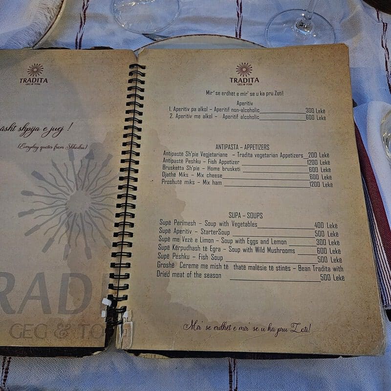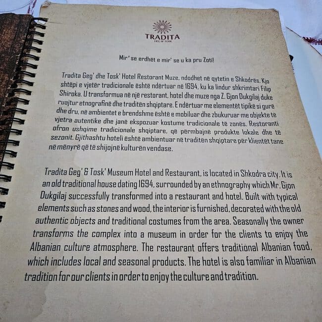 אז נכון שאפשר לאכול במסעדות השונות שבעיר או לשתות משהו בבר של המלון אבל גולת הכותרת כאן היא ללא ספק המסעדה הכך כך מיוחדת Tradita Geg & Tosk השוכנת לצידו. מעבר לאוכל הטעים, המסעדה מעוצבת כמו מוזיאון אתנוגרפי עם מבחר כלי מטבח ישנים, כיסאות ושולחנות עתיקים וטכניקות בישול מסורתיות.